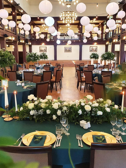 Na stole Młodej Pary znajduje się podłużna kompozycja - ok. 100-120cm długości lub dwie mniejsze.